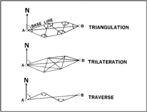 Triangulation can also refer to the accurate surveying of systems of very large triangles, called triangulation networks.